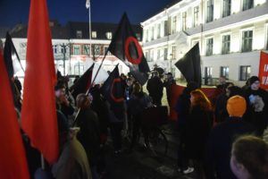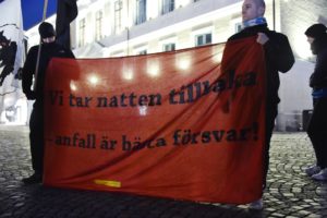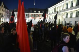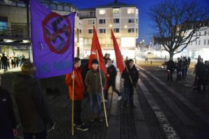 Vänstersympatisörer på Stortorget i Lund Ett hundratal vänstersympatisörer samlades vid 19-tiden på Stortorget i Lund för att demonstrera mot högerextremistiskt våld.