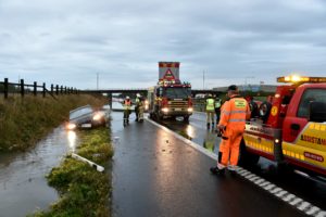 En trafikolycka på grund av vattenmassor inträffade på E6-an i höjd med Alnarp vid 17.15-tiden. När räddningsmanskapet kom fram stod en personbil nere i det vattenfyllda diket. Brandpersonalen stängde av en fil med flertalet varningsbloss under räddnings och bärgningsarbetet. Personerna som varit i bilen när den fick vattenplaning fördes in i en ambulans för kontroll och en bärgare bärgade upp bilen på vägbanan.