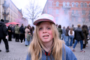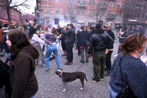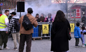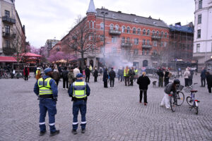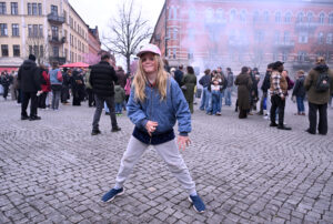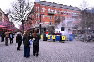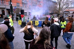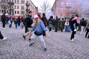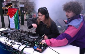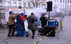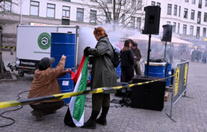 Vid 19 startade ett 3-timmars rejv med palestinaflaggor på Möllevångstorget