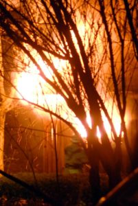 Vid en sophusbrand på Ramels väg i kväll vid 22