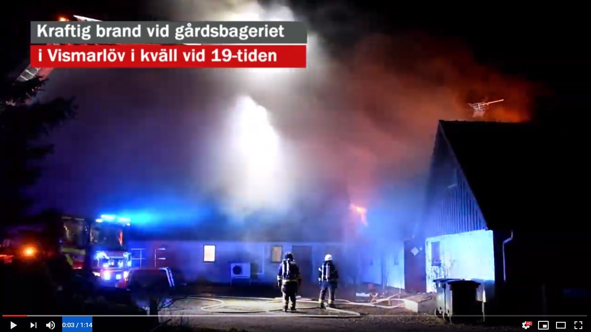 Video: Kraftig brand vid gårdsbageriet i Vismarlöv
