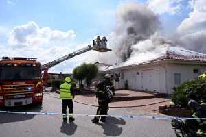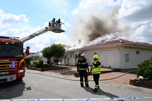 Brandkåren i Malmö och Svedala larmades vid 14.13 då grannar såg rök komma från villans takkonstruktion. När föra brandstyrkan från Malmö kom fram brann det kraftigt i taket. Rökdykare med slangledningar och skärsläckare sattes in för både in och utvändig släckning. När fler brandstyrkor kom fram sattes en maskinstege in i släckningsarbetet. Brandpersonal och boende hjälptes åt att rädda värdesaker från villan. Vid 15-tiden brann det även på bottengängen i villan, då taket hade rasat in på vissa ställen. Vad som orsakat villabranden är oklart i nuläget.
