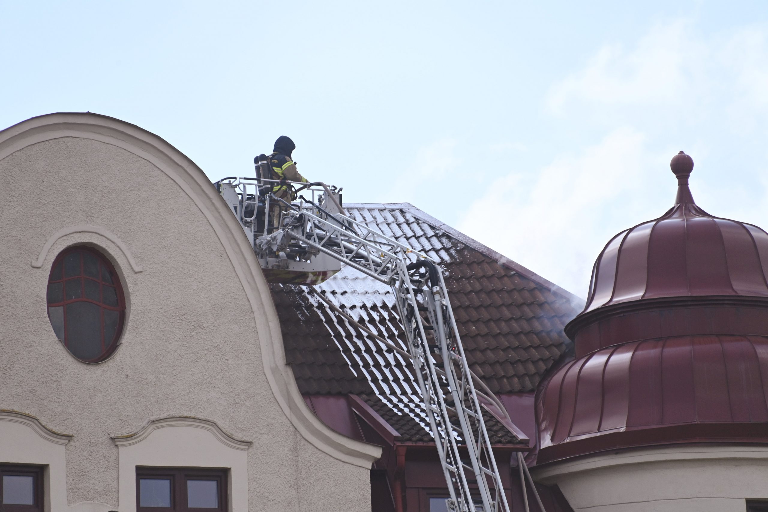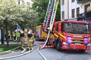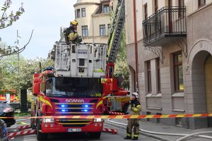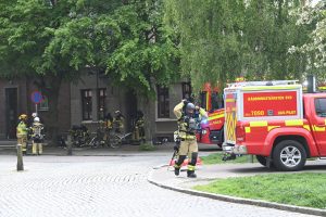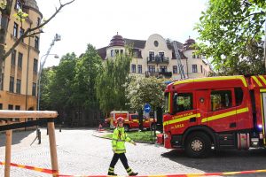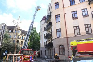 Brandkåren larmades vid 14.34 till en vindsbrand i korsningen Kristianstadsgatan och Södra Parkgatan. När första brandstyrkan kom fram kunde man se rök från vinden på en äldre 5 våningsfastighet. Rökdykare skickades upp via två trapphus och flera höjdfordon restes mot taket för håltagning och brandsläckning. Efter ca 20 minuter hade rökdykarna tagit sig in på vinden för att leta efter branden. En synd senare hade släckning påbörjats både inifrån och från utsidan. Polis och räddningstjänst evakuerade det brinnande huset på boende. Polispersonal spärrade av både Södra Parkgatan och Kristianstadsgatan för att räddningstjänsten skulle kunna jobba ostört på platsen. Vid 16-tiden höll räddningstjänsten fortfarande på med släcknings och eftersläckning på platsen. Hur branden på vinden startat är i nuläget oklart.