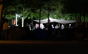 Viss bevakning vid det olagliga aktivistlägret i Lundegård Viss bevakning vid det olagliga aktivistlägret i Lundegård i Lund.