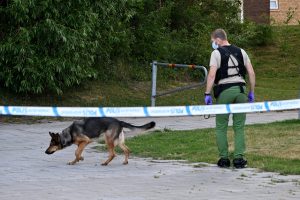 Yngre man skadad efter två skjutningar på Katanjegården vid 19-yiden. Först larmades polis till en skjutning vill en villa och kort senare skjuts en yngre man vid ett flerfamiljshus på Gånglåtsvägen. Den skjutne fördes till sjukhus med ambulans. Polisen spärrade av runt den beskjutna villan och flera innergårdar på Gånglåtsvägen där den skjutne anträffades. Polis med vapenhund sökte sedan på båda platserna där man hittade flera tomhylsor. Vid 21.30-tiden greps flera personer i fordon på Gånglåtsvägen av ett större polispådrag. Om dessa gripanden har med skjutningen att göra vill polisen inte berätta i nuläget. Villan som besköts i dag besköts för en kort tid sedan med flera skott mitt i natten. Om de båda villaskjutningarna har något samband kommer nu polisen att försöka utreda.