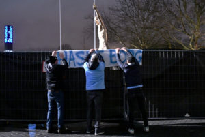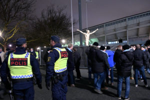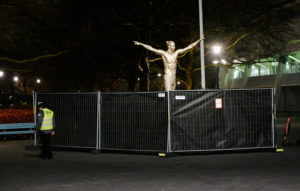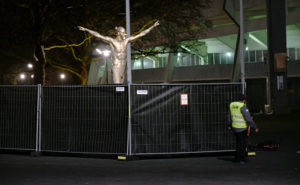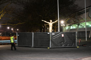 Zlatanstatyn bevakades av vakter under kvällen. Efter MFF matchen mot Dynamo Kiev visade en del MFF-supporters sitt missnöje genom att kasta in skräp i inhägnaden vid statyn. Även en banderoll sattes upp på staketet.
