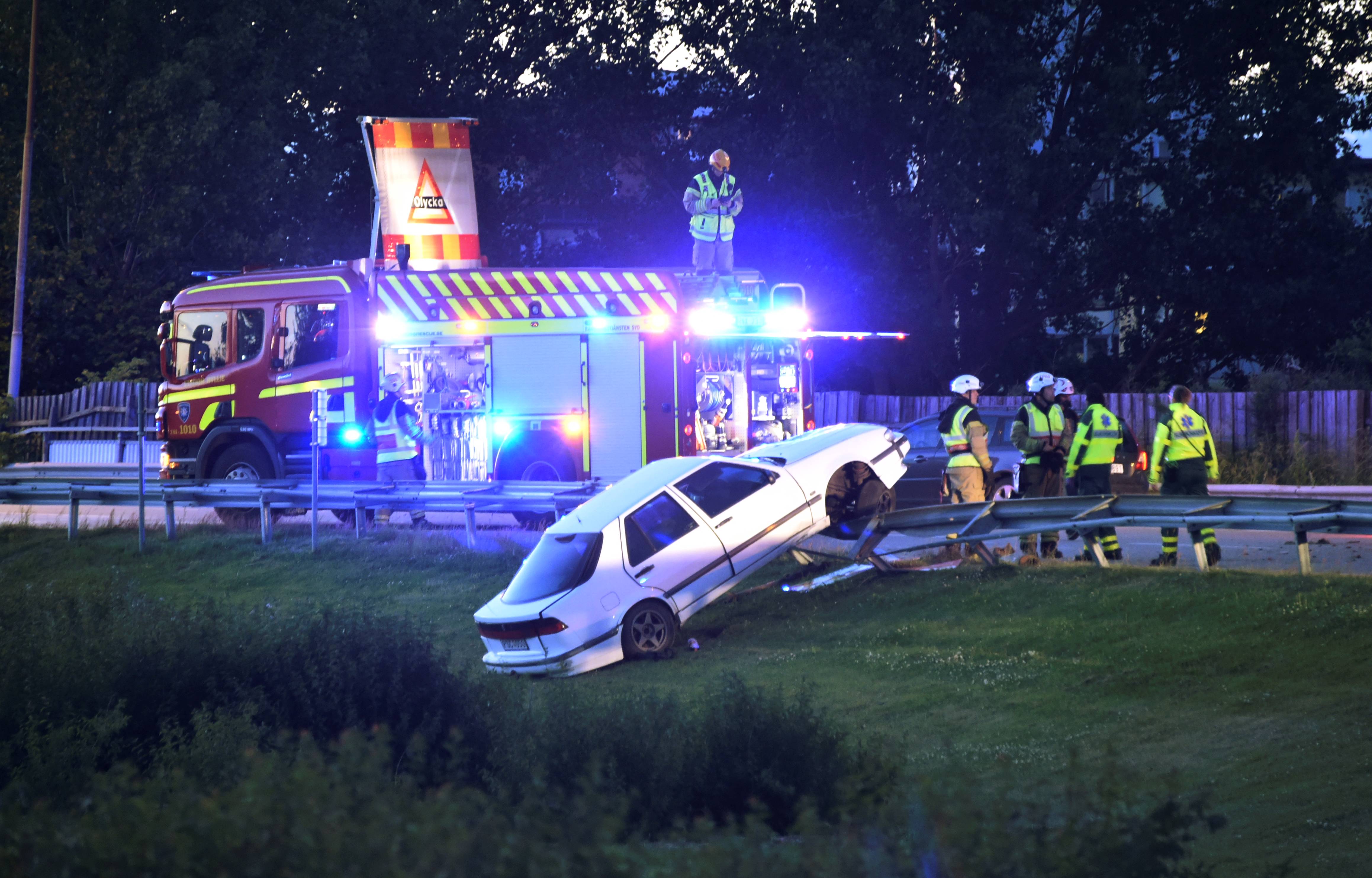 Polis brandkår och ambulanser larmades vid 01.30-tiden till en trafikolycka på Jörgen Kocksgatan bakom centralstationen. När räddningspådraget kom fram fann man en kraschad bil med…