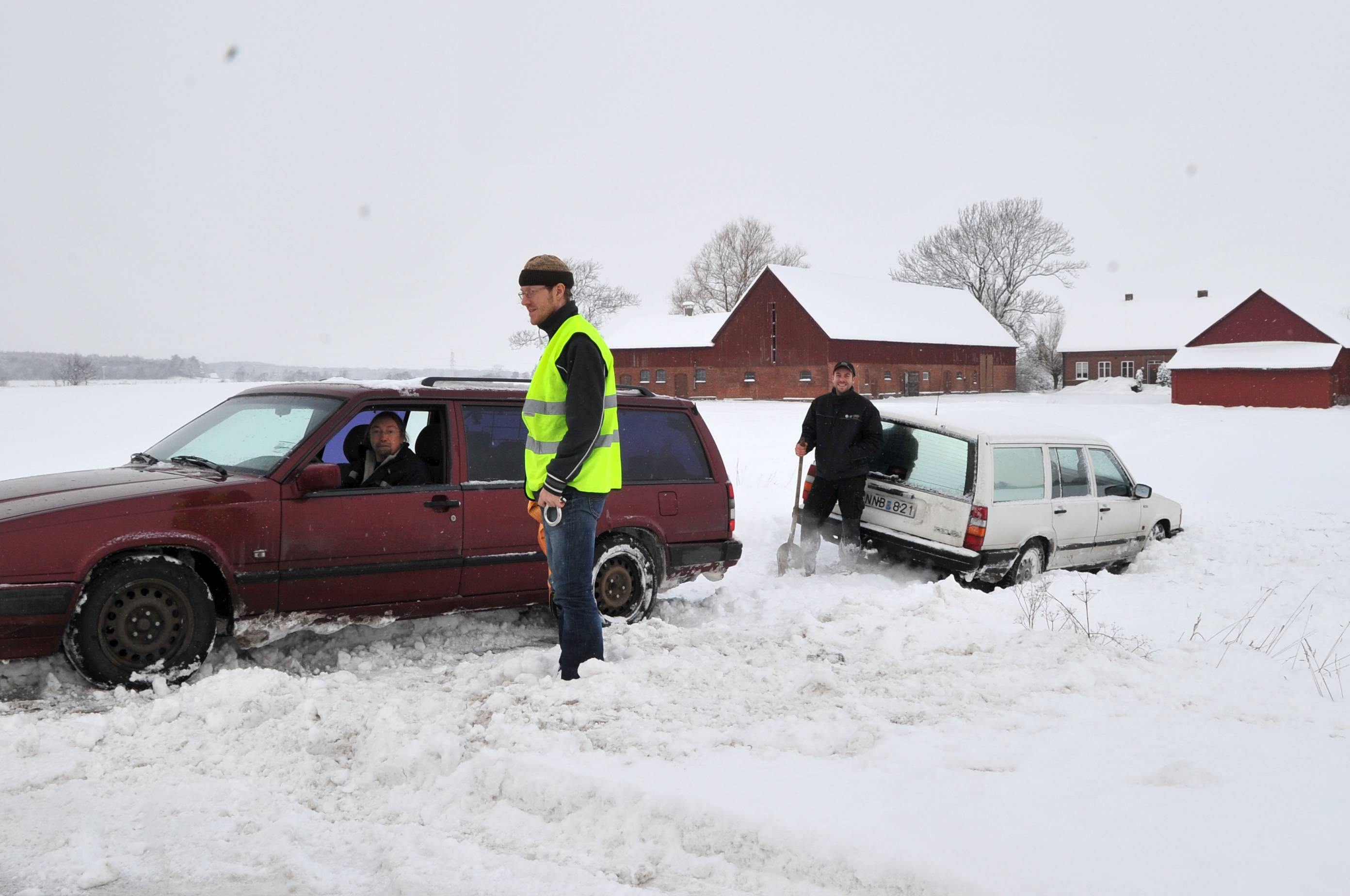 Övergivna bilar på gamla vägen mellan Vellinge och Höllviken i närheten av Kungstorp. Vägen hade tidigare blivit plogad av en plog som sicksackat sig fram…